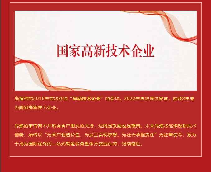 高臻榮獲“省專精特新企業”“省名優高新技術產品”及“省創新型中小企業”等稱號!